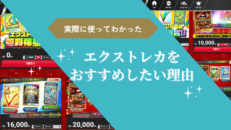 「エクストレカって本当に当たるの?」「オンラインオリパって結局、ユーザーが損するんじゃないの?」 結論から言うと、エクストレカは使い方次第でちゃんと勝負できるオリパサイトです!実際に使ってみて、トップレアやBOX当選も経験し、今では一番に愛用しています。 本記事では、トップレアなど実際に当たった成果、実際に使って感じた率直な評価からおすすめできる理由、他オリパとの違いまでを、体験ベースで正直に解説 […]
