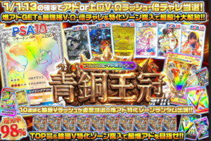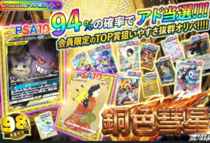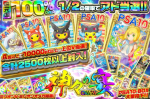 1/2の確率でPSA10+BOXが当たる設定、1口10,000pt以上の大勝負!