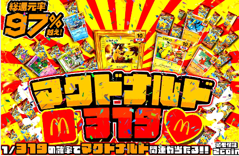 1/319の確率でマクドナルドとコラボしたカード類が当たるオリパ。